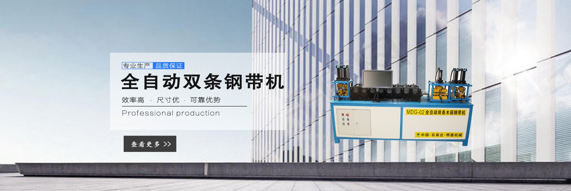 石家莊明德包裝機械有限公司是國內專業生產木全自動木箱鋼帶機、半自動公母扣木箱打扣機、全自動雙排孔定長切斷機、美式托盤打釘機械、托盤刨槽機、倒角機、木包裝箱、木托盤的生產廠家。
